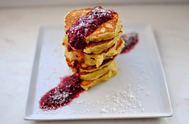 Placki z mąką kokosową, bardzo delikatne. Przepis jeszcze do dopracowania. Pamiętam tylko, że dałam 2 łyżki mąki kokosowej, a resztę tak, aby