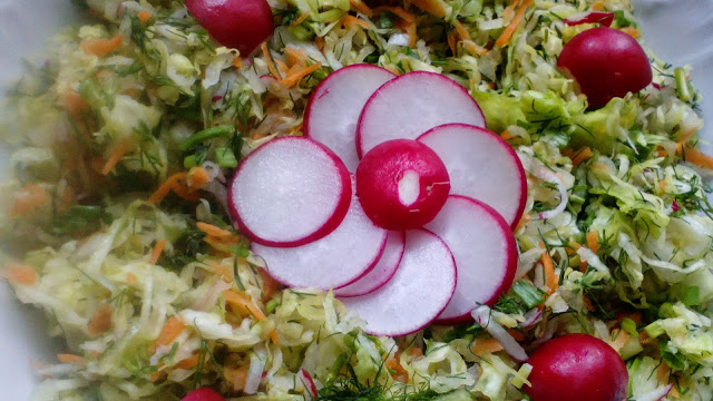 Smaczna i i pachnąca wiosną surówka z młodej kapusty. Koperek , szczypiorek, rzodkiewka wszystko w jednym. Warto zaserwować rodzinie do obiadu.Zapraszam na bloga.
