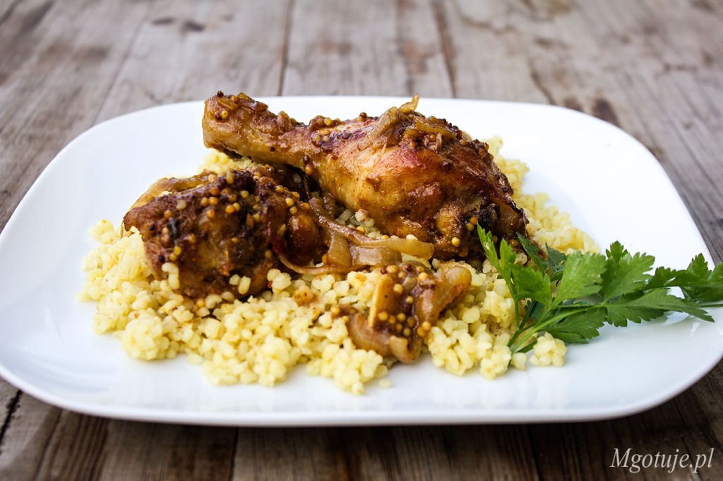 Ja podałam kurczaka z kaszą bulgur, ale możecie podać go również z ziemniakami czy ryżem.