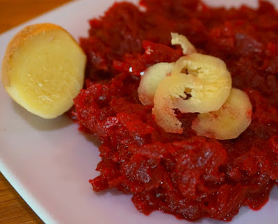 1 kg buraków1 cebula2 cm korzenia imbiru ocet 10%cukierolej do smażeniasól morskapieprz…