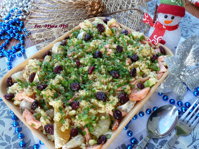 Coś dla krewetkożerców Składniki ryż 1/2 szklanki krewetki mrożone 100 g łosoś…