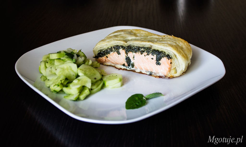 Wpis pochodzi z www.mgotuje.pl Łosoś pod pierzynką z szpinaku i sera feta…
