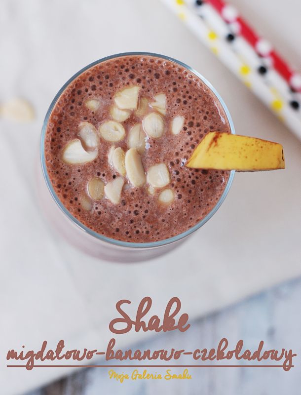 1 szklanka mleka krowiego lub mleka migdałowgo1 banan1 łyżka płatków migdałowych lub migdałów1 łyżeczka kakao
