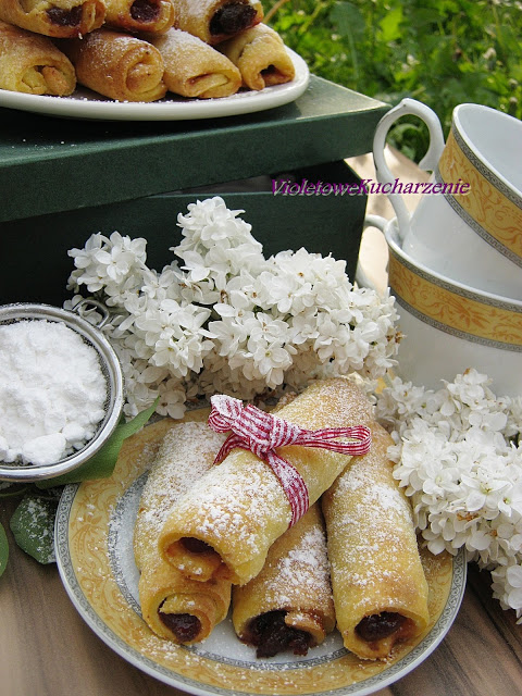 250 g twarogu półtłustego250 g masła250 g mąki pszennej + do podsypania1 jajkoMarmolada wieloowocowaCukier puder