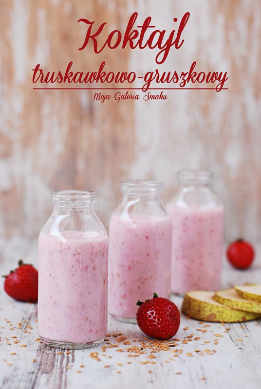 Składniki na 2 porcje:1 szklanka mleka1 szklanka truskawek1 gruszkaszczypta cynamonu1 łyżka siemienia lnianego1 łyżka syropu z agawy (opcjonalnie)