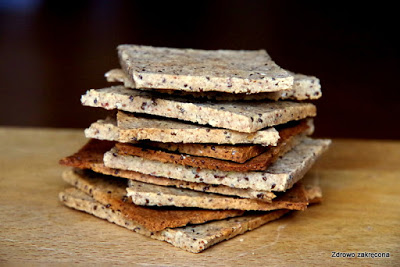 Dziś przepis z poczekalni, bo ja od 1 czerwca jestem, na razie eksperymentalnie, na diecie całkowicie surowej i wegańskiej. Jeśli jednak jecie nabiał i nie unikacie pieczonych dań, gorąco polecam te chlebki – są naprawdę pyszne, chyba najlepsze z kruchego pieczywa, jakie dotąd dane mi było jeść. Przepis znalazłam gdzieś