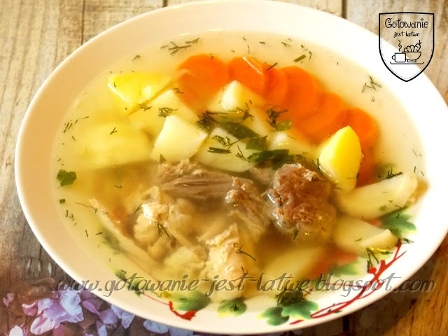 500 g wołowiny rosołowejporcja rosołowa z kurczaka lub kawałek kaczkimarchewkapietruszkaselerporsólpieprzziele angielskielistek laurowycebulanatka…
