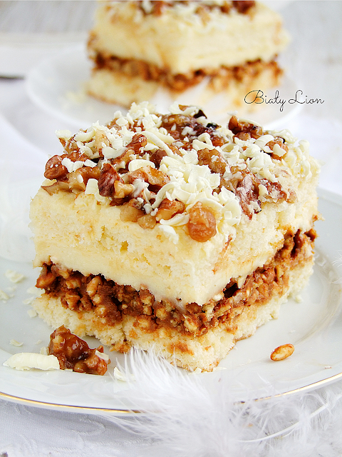 …ciasto Biały Lion smakuje wyśmienicie; jak to z przekładanymi ciastami bywa smakuje…