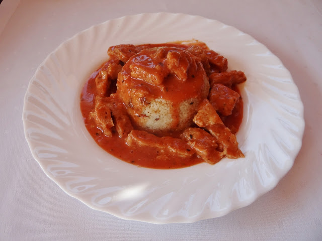 Dziś polecam Wam kolejne lekkie i szybkie danie. Jest to kasza kuskus z kotletami sojowymi w sosie pomidorowym.