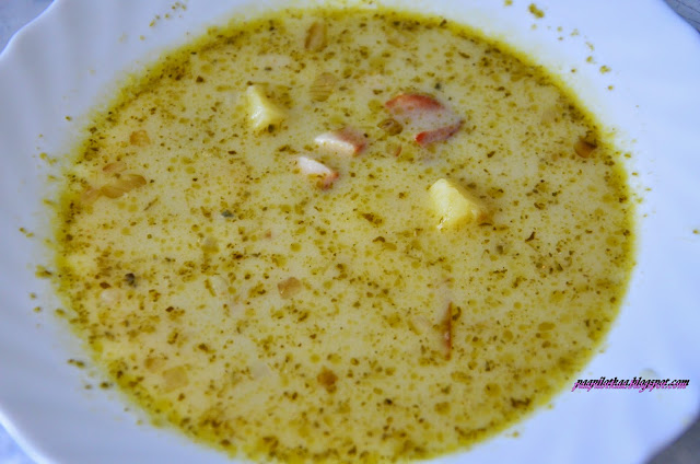 Bardzo lubię różnego rodzaju zupy. Oczywiście, najlepiej smakują te, które ktoś zrobi ale czasami trzeba sobie radzić samemu.Znalazłam ostatnio i wypróbowałam ciekawy przepis na zupę z pesto.Smakiem przypomina troszkę zalewajkę choć smak pesto dominuje.Polecam!