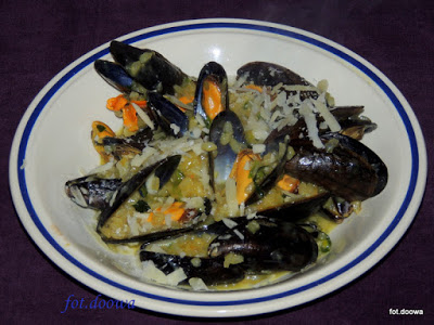 Dziś postawiłam na risotto a dodatkiem są tu mule które także uwielbiamy.