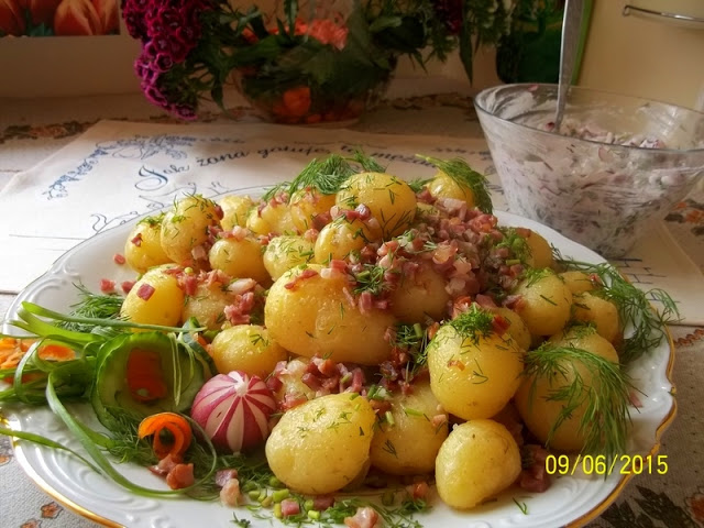 Ziemniaczki w takim wydaniu smakują z każdą surówkąi z każdym chłodnikiem a nawet z samym kefirem, zsiadłym mlekiem lub jogurtema także z bigosikiem z młodej kapusty.