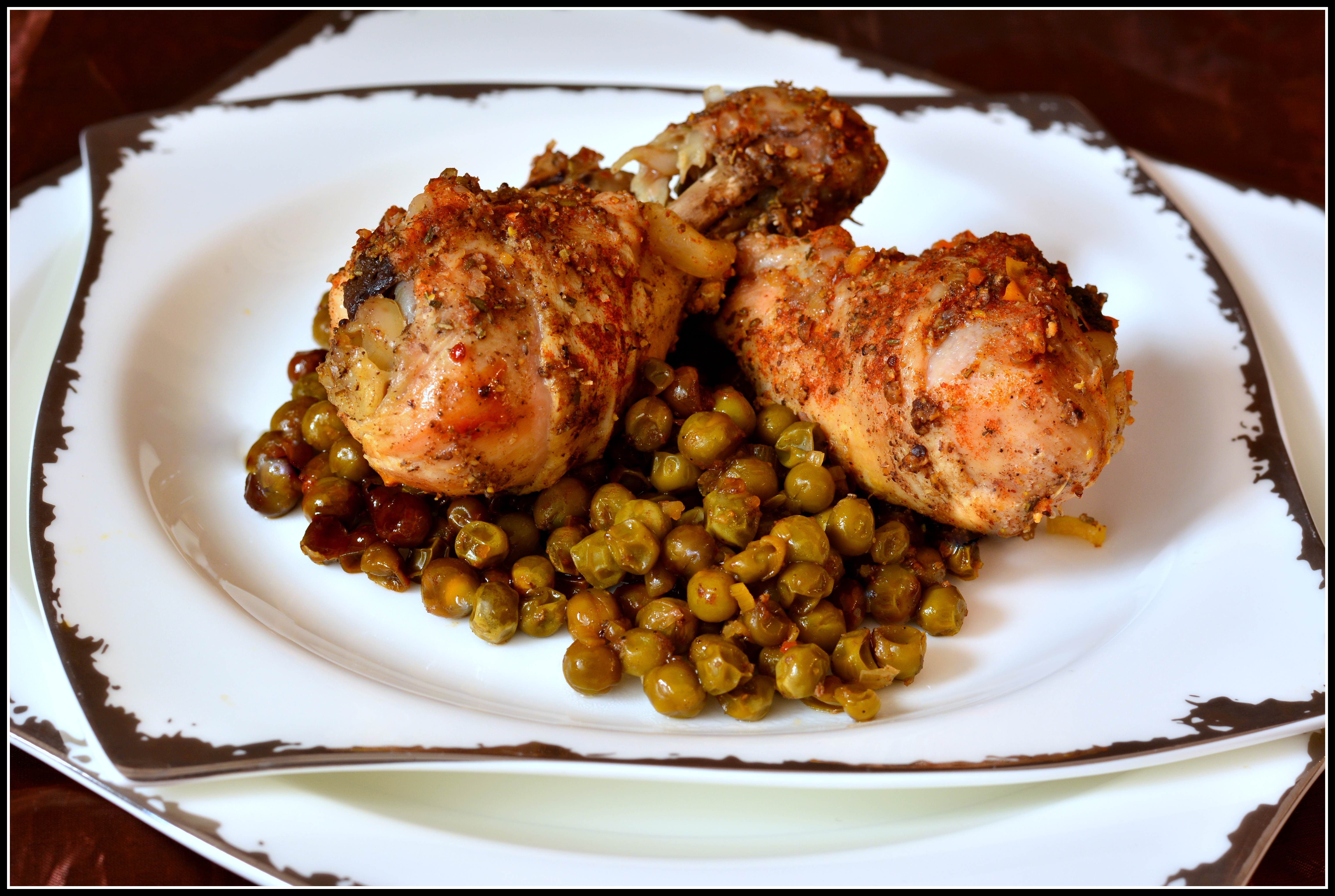 Składniki: 1 kg pałek z kurczaka 1 opakowanie mrożonego groszku 1/2 pora…