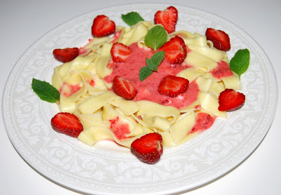 Ja też dzisiaj poszłam na łatwiznę i zrobiłam makaron z sosem truskawkowym.