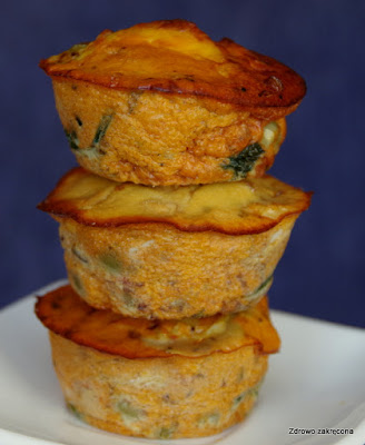 Tymczasem przepis z poczekalni.Kolejne muffiny jajeczne, tym razem ze szpinakiem, gotowanym jajkiem i suszonymi pomidorami. Jeśli jecie sery, można dać fetę lub ser pleśniowy