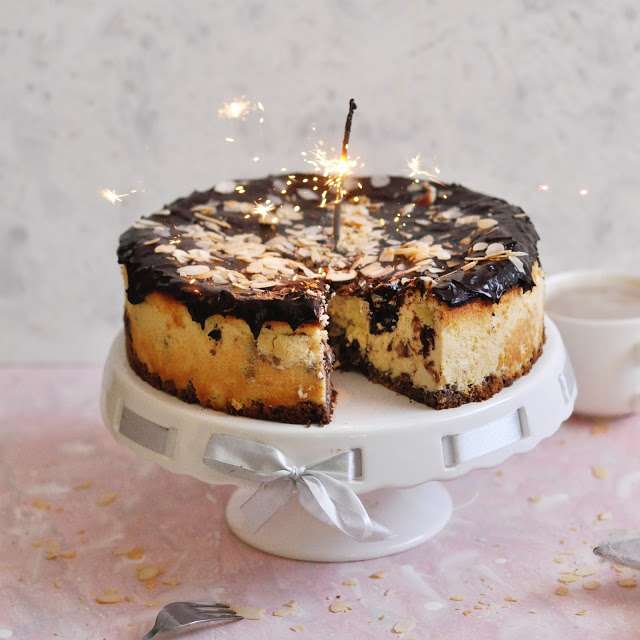 Puszysty, delikatny, słodki sernik na pełnoziarnistym kakaowym spodzie. Bez dodatku cukru (ja…