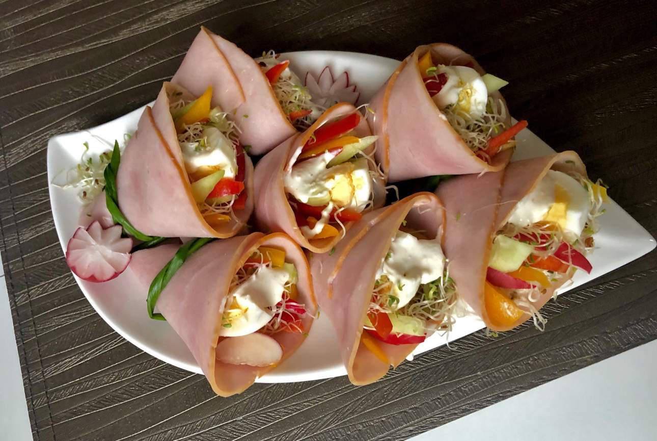 Roladki z szynki z sosem chrzanowym Szynka faszerowana jajkami, warzywami i sosem…