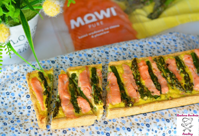 Krucha, chrupiąca tarta z aromatycznym, wędzonym łososiem, chrupiącymi szparagami i nadzieniem śmietanowo-serowym…