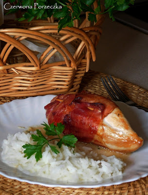 Składniki:2 pojedyncze piersi z kurczaka150g serka mascarpone4-6 cienkich plasterków wędzonej szynki lub…