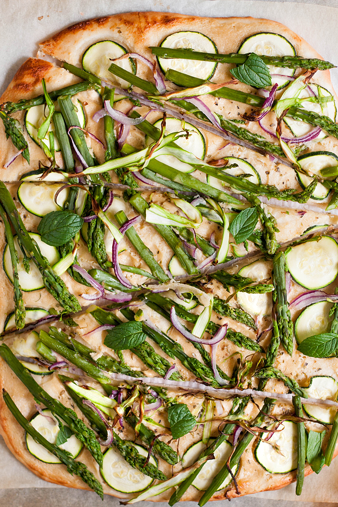 Sezon na szparagi pomału dobiega końca, a ja dopiero teraz się zorientowałam, że na blogu zupełnie brakuje przepisów z ich udziałem. Więc szybko nadrabiając zapraszam Was do przygotowania przepysznej pizzy z białym sosem na bazie orzechów nerkowca, a do tego wspomniane szparagi, zielona cukinia oraz czerwona cebula. Placek jest przepyszny,