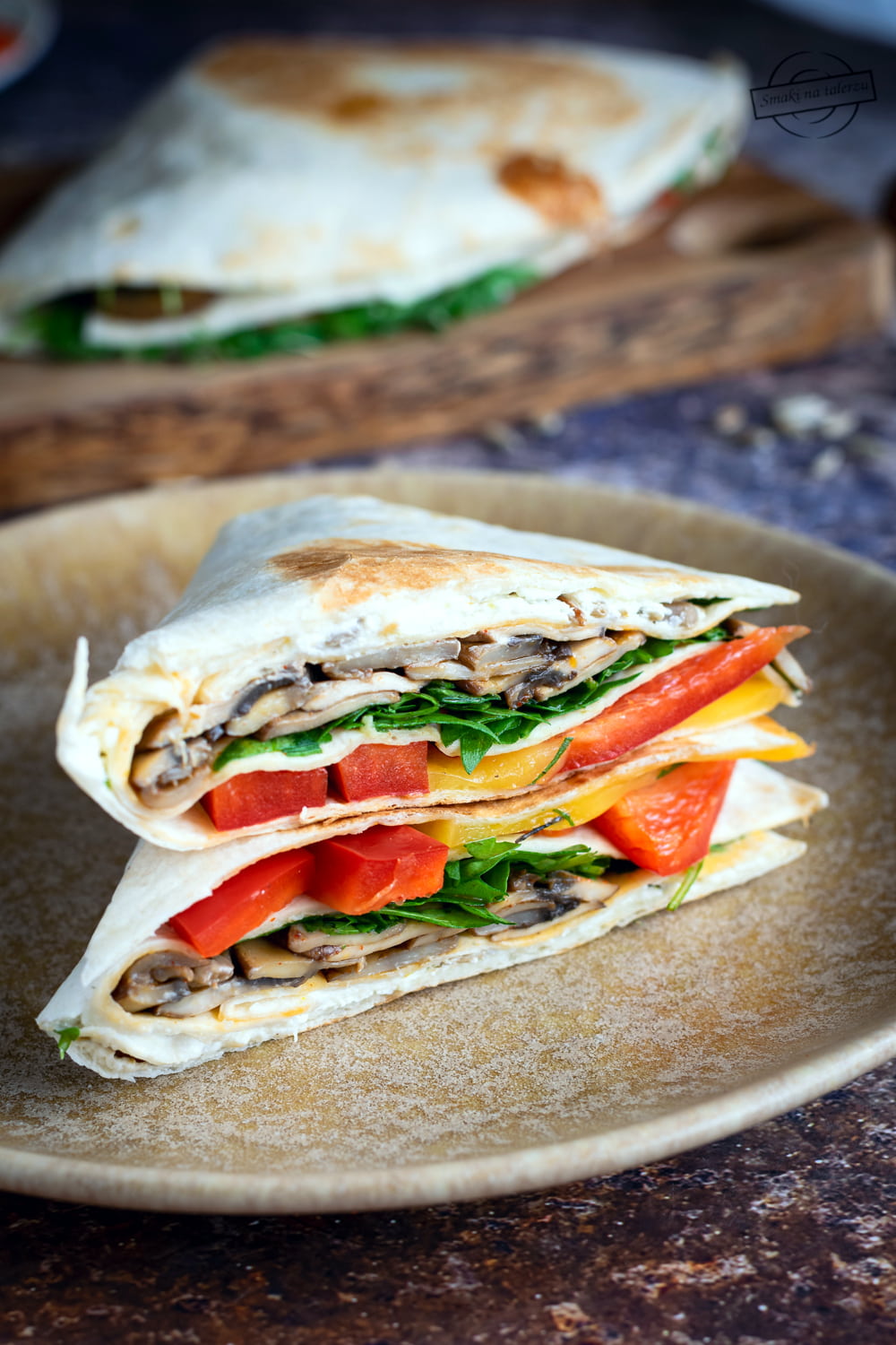 Składana tortilla z serkiem kanapkowym i pieczarkami