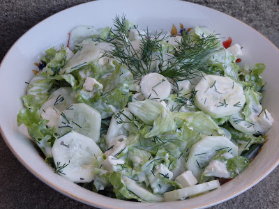 Pyszna, lekka sałatka z zielonych składników z dodatkiem sera sałatkowego. Świetnie smakuje sama, ale może być też pysznym dodatkiem do mięska do obiadu a także świetnie pasuje do kiełbaski i mięs z grilla.