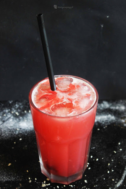 Słowo kompot jest dla mnie jednoznaczne ze stołówkami i barami mlecznymi rodem z PRL, Przypomina mi się również moją wlasną szkolną i uniwersytecka stołówka oraz święta. Bardzo chętnie odświeżyłam truskawkowy kompot nadając mu: ” icy touch” tzw. lodowaty dotyk 😛 Odkurzając przy okazji skostniałe i utarte w