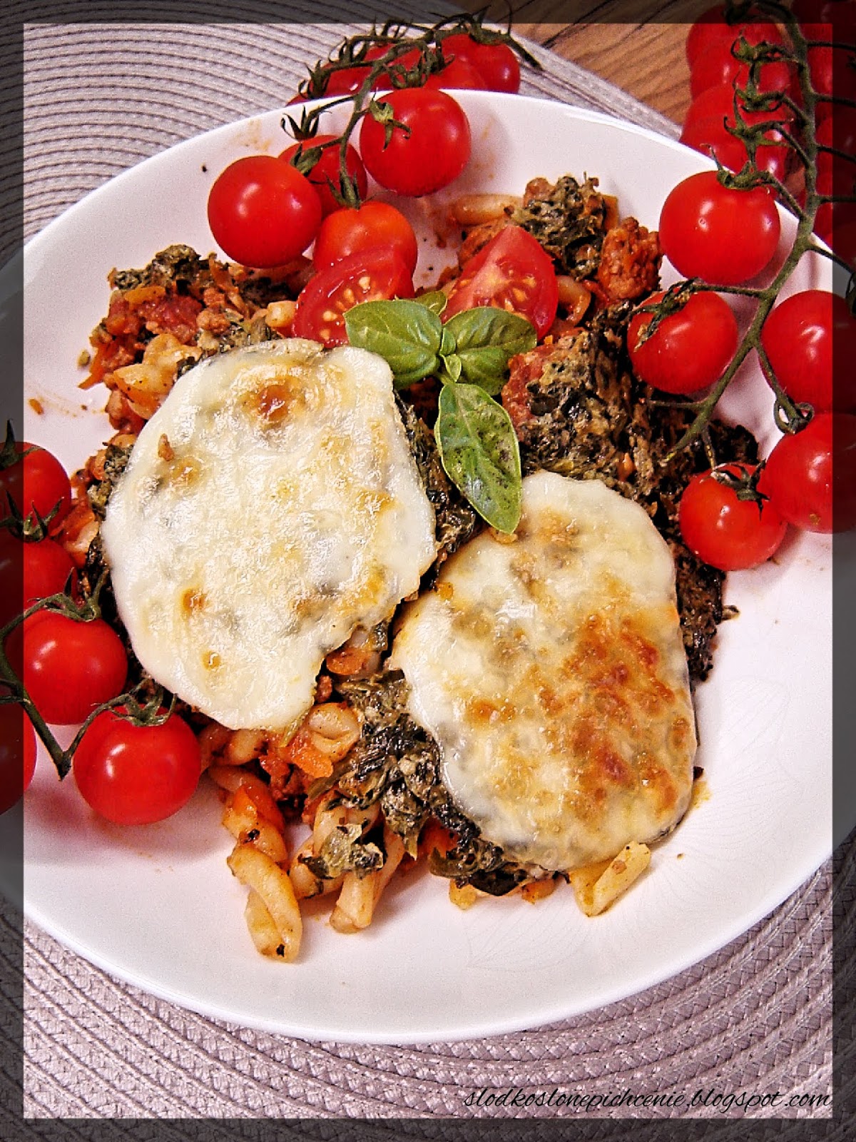 Pożywna zapiekanka makaronowa z mięsem mielonym, szpinakiem i mozzarellą. 🙂 Zapiekanka makaronowa…