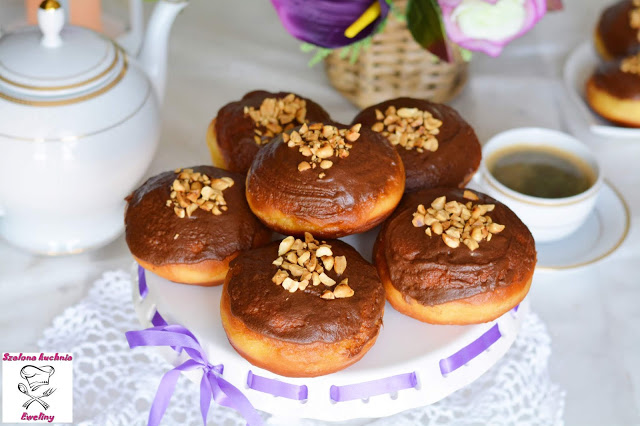 Klasyczne domowe pączki wypełnione dużą ilością nadzienia czekoladowego, polane słodką czekoladą i…