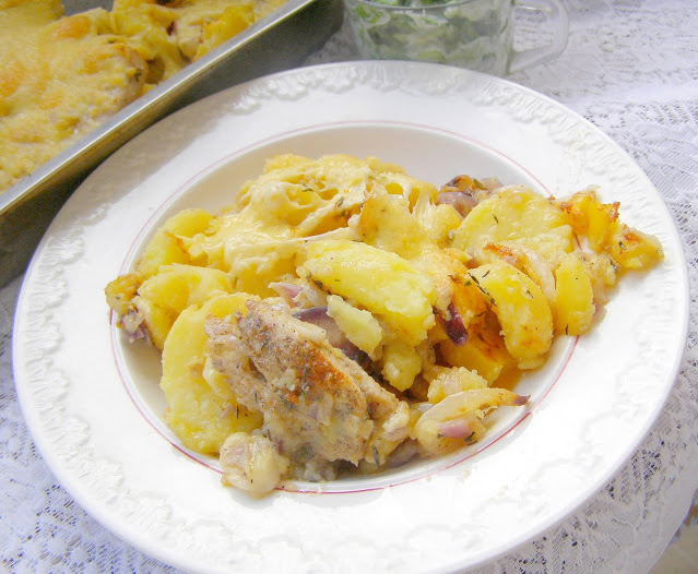Składniki: ziemniaki 1,5 kg, sznycle z indyka 5 sztuk opakowanie, cebula biała…