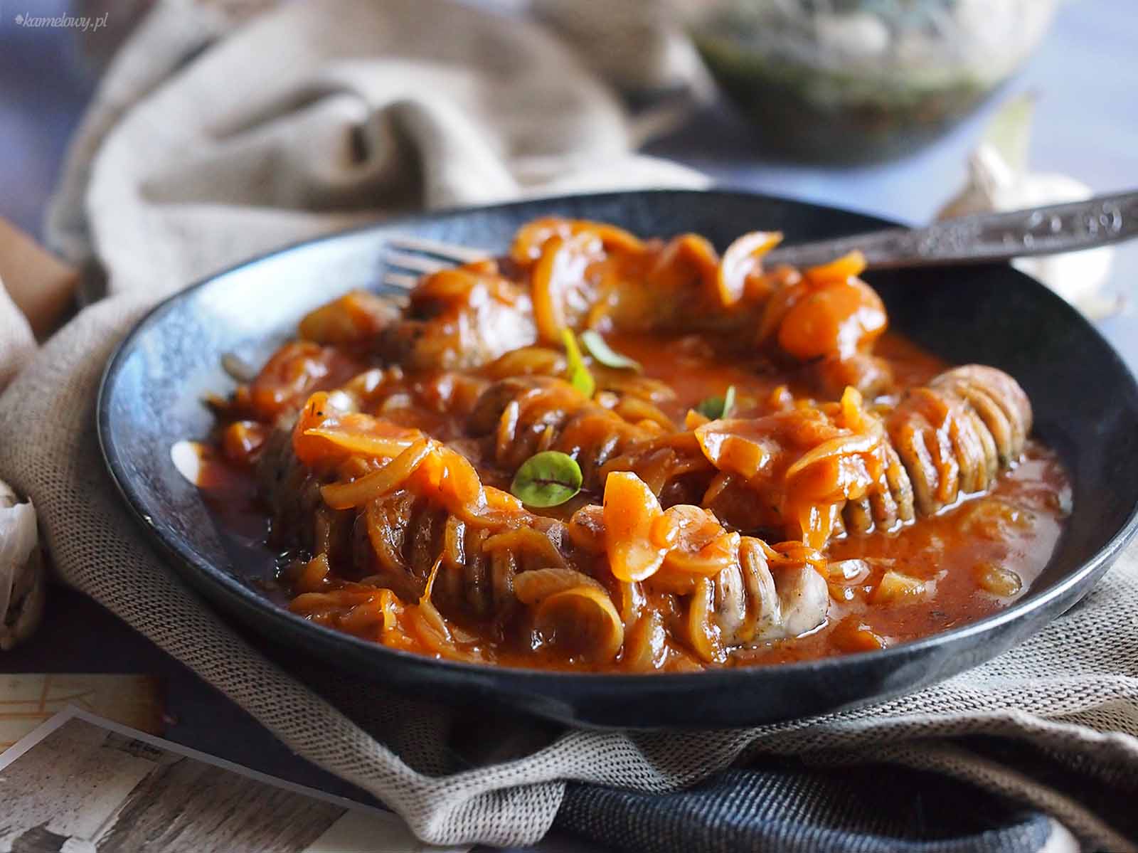 Biała kiełbasa ze słodko-pikantną cebulą / Sausage with sweet and spicy onion