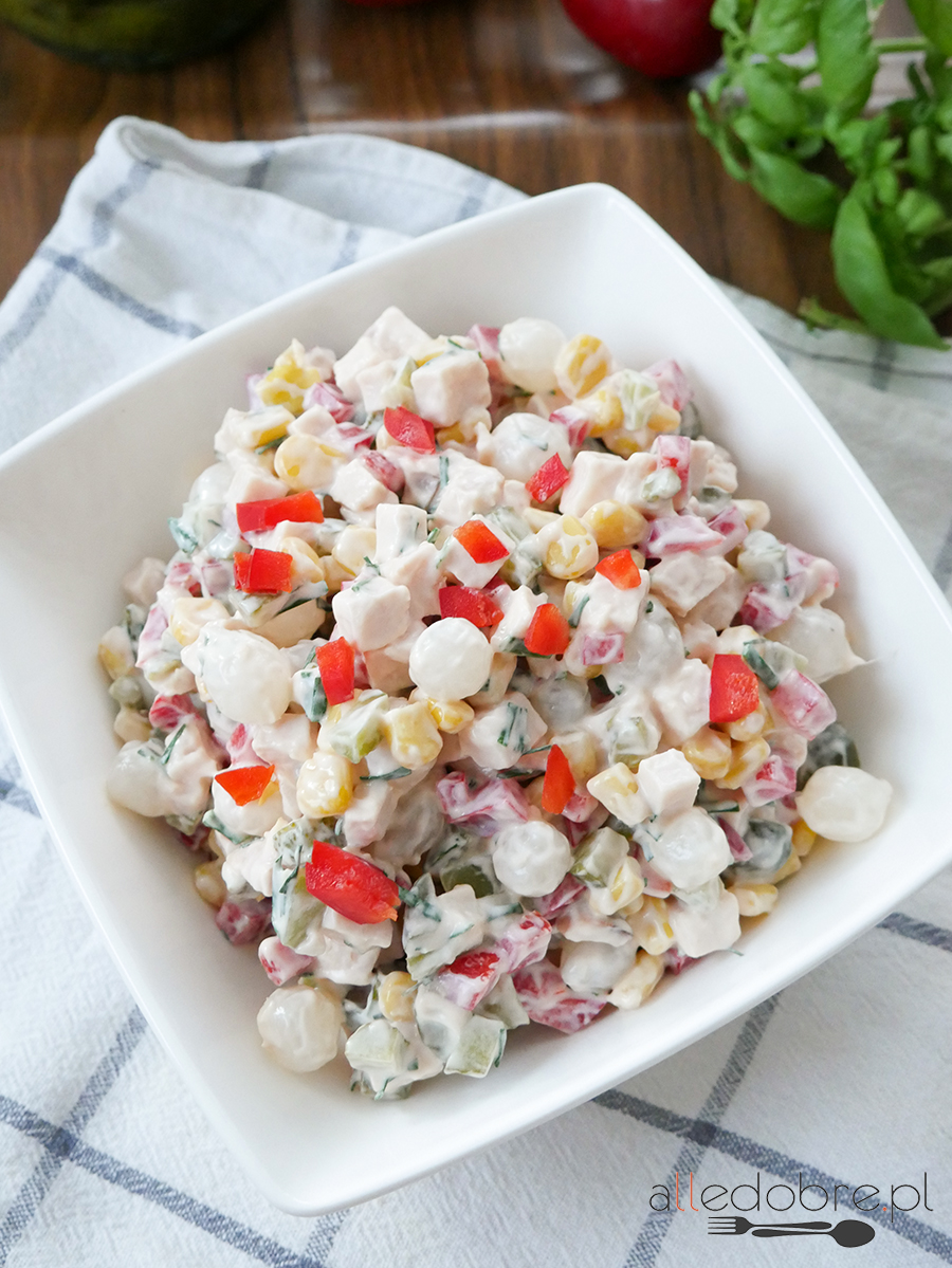 Prosta, szybka i co najważniejsze bardzo smaczna sałatka z cebulką marynowaną, szynką…