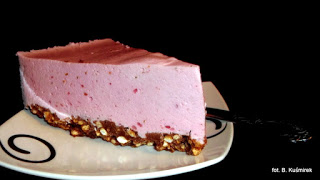 Sernik, truskawki i pyszny spód kakaowy o smaku szyszki, to mój sposób na oryginalny sernik na zimno z musem truskawkowym.