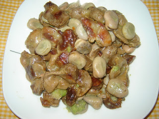 Tegoroczny młody bób podany w towarzystwie mięsnym.