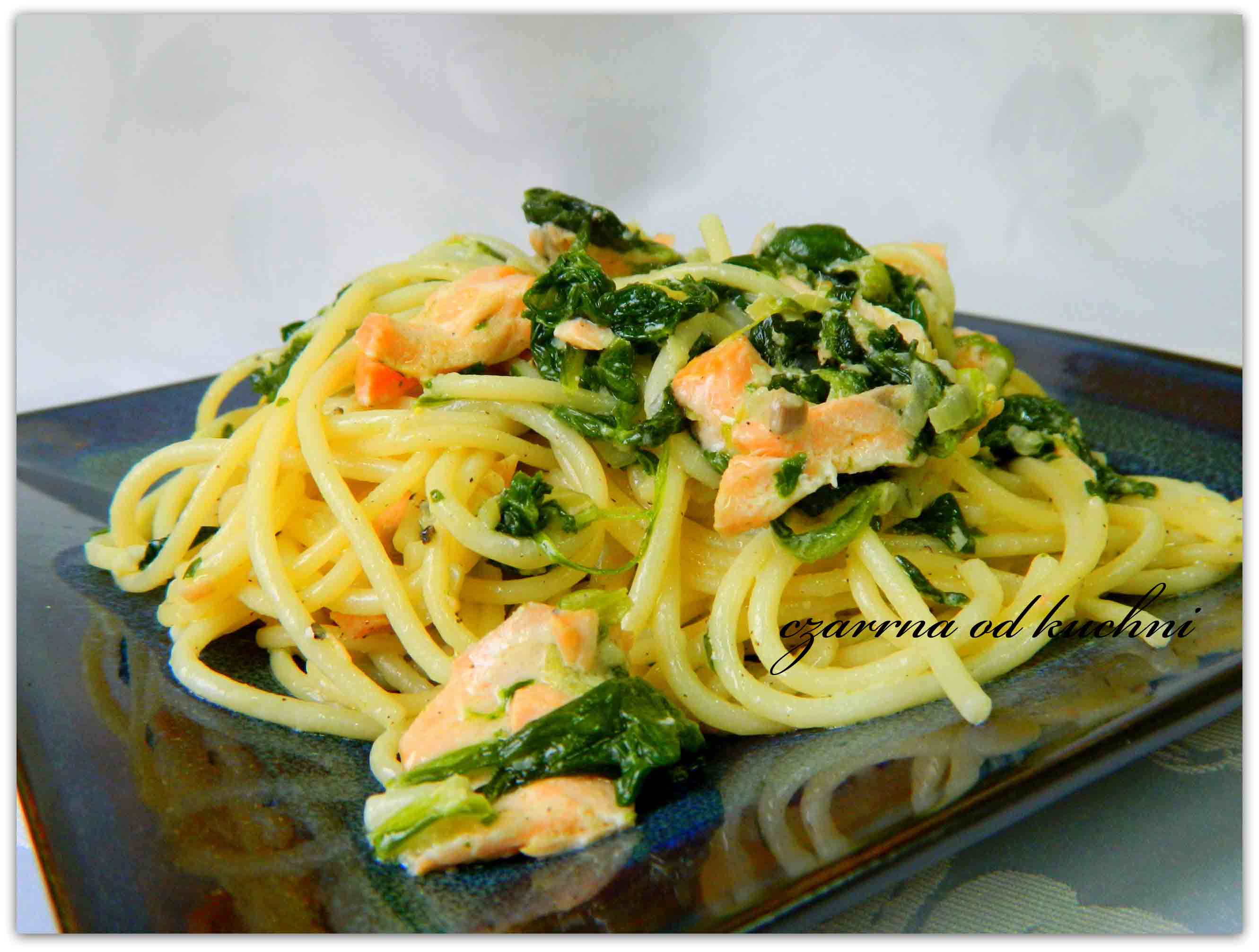 Spaghetti z łososiem i szpinakiem