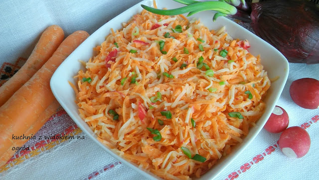 Marchewka z selerem sałatkowym i rzodkiewką. Szybka surówka obiadowa.