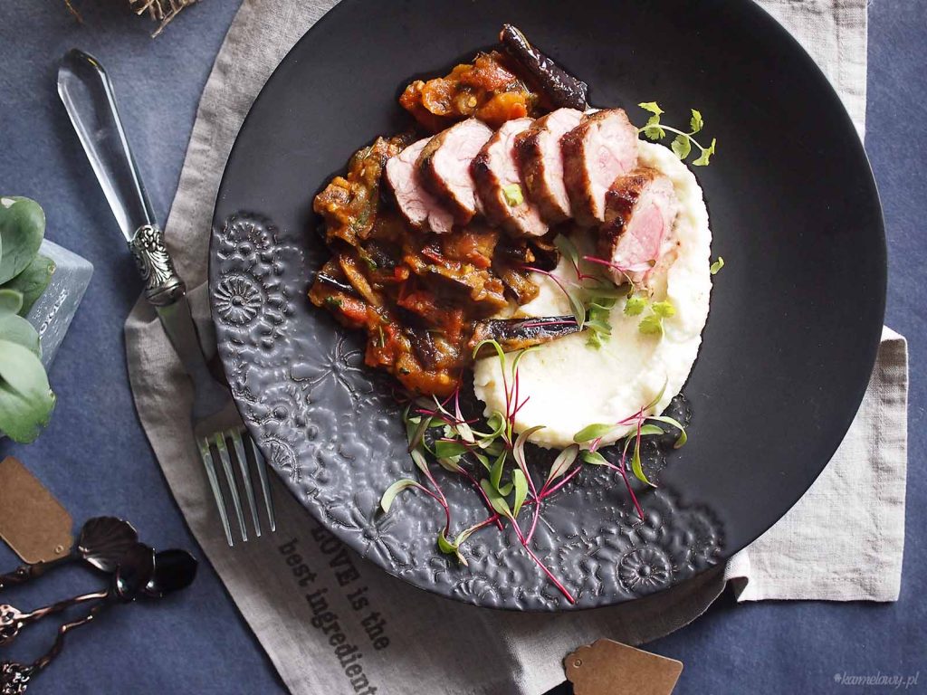 Marynowana jagnięcina na pikantnym gulaszu z bakłażana / Marinated lamb with spicy eggplant stew