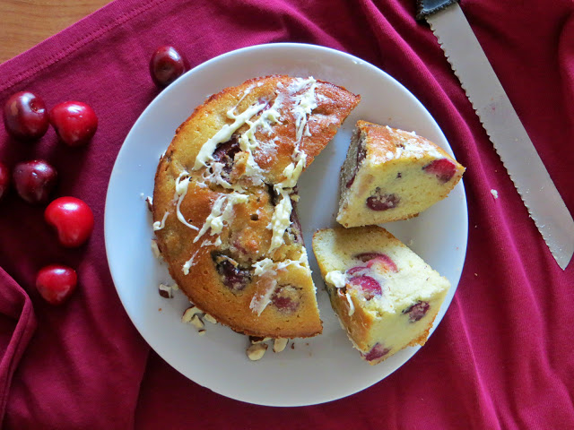 W zorganizowanej na blogu niedawno ankiecie zagłosowaliście m.in. na lekkie, dietetyczne słodkości.Wytrawnie było ostatnio, więc zabrałam się za wypieki. Wychodząc Wam na przeciw, przedstawiam proste, letnie ciasto z owocami. Wybrałam czereśnie, bo ostatnie bardzo je lubię. Ciasto ma mało cukru, który śmiało można zastąpić