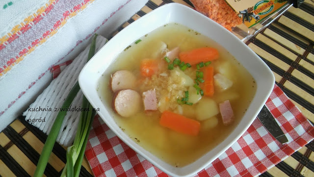 Zupa z czerwonej soczewicy na wędzonce z ziemniakami. Sycąca, zimowa zupa.