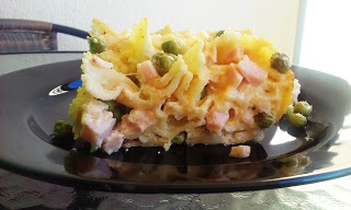 Smaczna zapiekanka makaronowa, z tegorocznym zielonym groszkiem.
