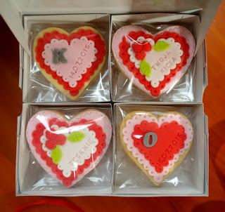 Dzisiaj prezentuję zestaw z ciasteczkami, jaki przygotowałam na zamówienie „na wczoraj”. 14 z ciastek (z 16 sztuk) zawiera po jednej literce, by w sumie utworzyć napis KOCHAM CIĘ MISIU :-). Każde z nich zawiera datę oznaczającą dzień, w którym zakochani przeżywają rozłąkę.