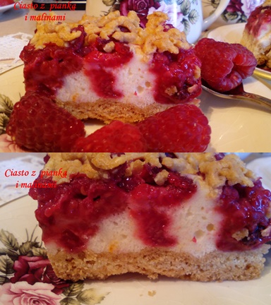 Wczoraj na blogu była trata z malinami, dzisiaj kruche ciasto z pianką i malinami. Wygląda bardzo apetycznie i również tak smakuje.Zapraszam.