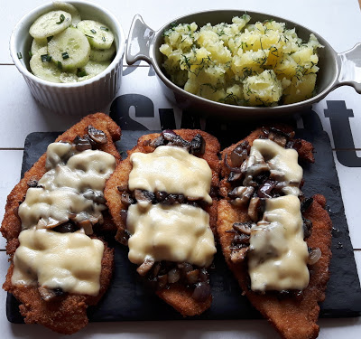 Sznycelki z indyka w panierce smażone z pieczarkami i serem – prosty…