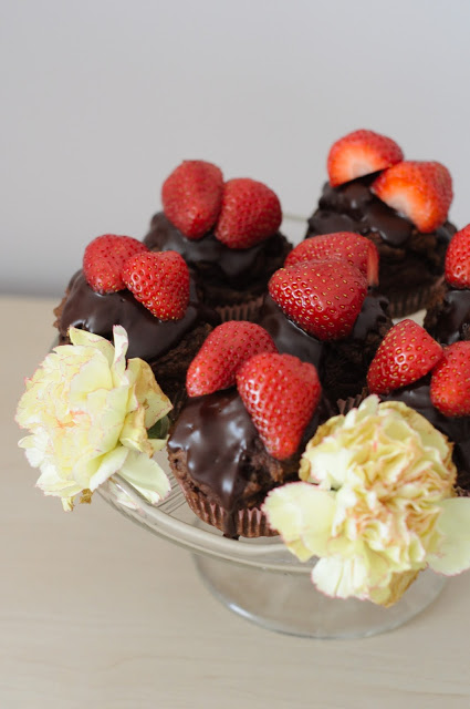 Bananowe babeczki z czekoladą i truskawkami (bezglutenowe i bezcukrowe)