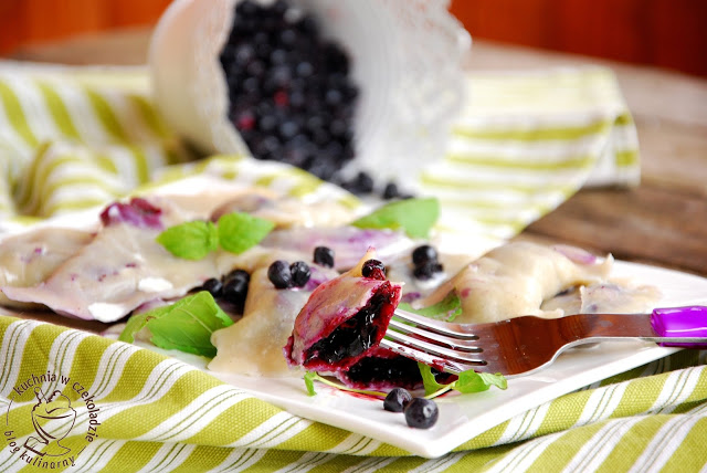 Jest lato, są borówki, więc obowiązkowo muszą być pierożki. By jednak troszkę je sobie urozmaicić, do ciasta pierogowego dodałam odrobinę mleka w proszku. Są dzięki temu bardziej wyraziste w smaku i jak dla mnie delikatniejsze. Zrobiłam malutką porcyjką, bo coś ok 25 sztuk, ale przy „kombinowaniu” nie ma co szaleć,