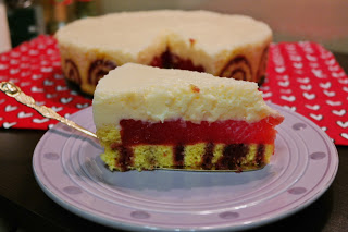 Wykorzystanie rolady jako spodu i boków ciasta juz gdzieś widziałam wcześniej, dlatego inicjatorem się nie okrzyknę. 😉