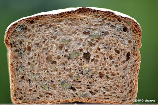 W książce Hamelnana znalazłem przepis na chleb pszenny razowy (tak naprawę półrazowy), który po drobnych modyfikacjach może być świetną bazą do wypieku całej gamy chlebów z dodatkami w postaci nasion i orzechów. Chleb zawiera idelanie (moim zdaniem) dobrane proporcje pszennej mąki chlebowej, razowej, wody i