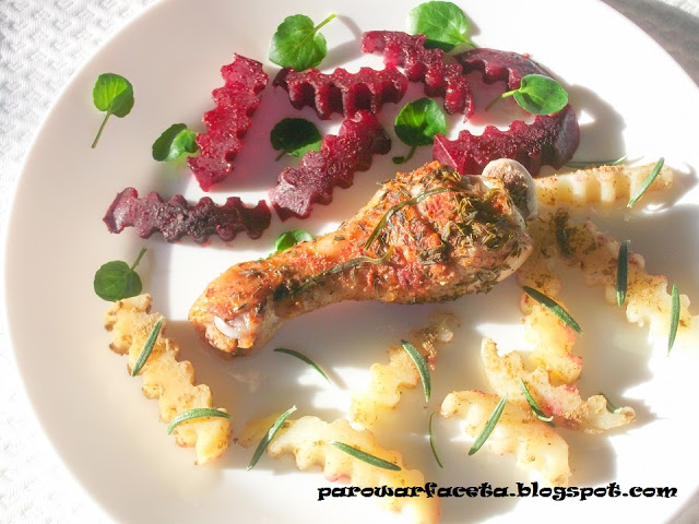Chwilę nic z przepisów się nie pojawiało, ale już wracam z nowymi pomysłami 🙂 Dziś podudzie z ziemniakami i buraczkami, w sam raz na niedzielny obiad 🙂