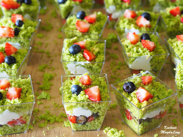 Znane i lubiane ciasto leśny mech w formie warstwowych deserów w pucharkach,…