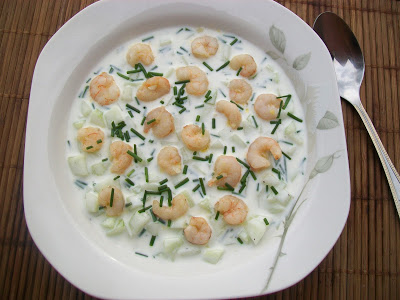 Zapraszam na kolejny orzeźwiający chłodniczek ogórkowy tym razem z dodatkiem awokado i podsmażonych krewetek. Idealny na upalne dni.